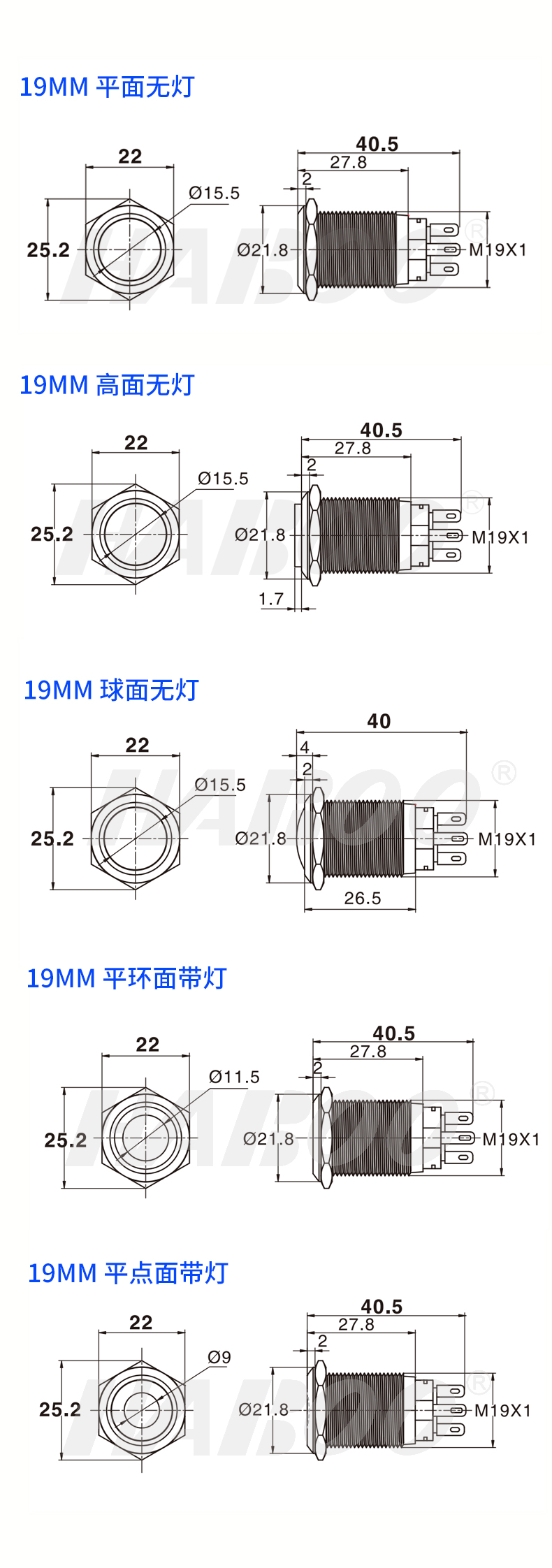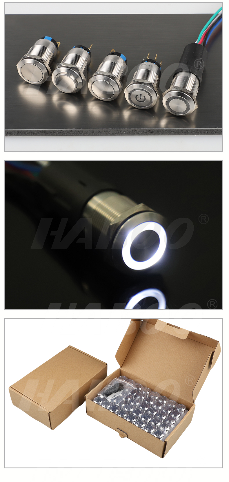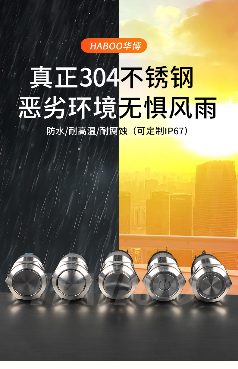 19mm 金属不锈钢复位带灯自锁电源按钮开关 防水IP65 IP67 工厂供应