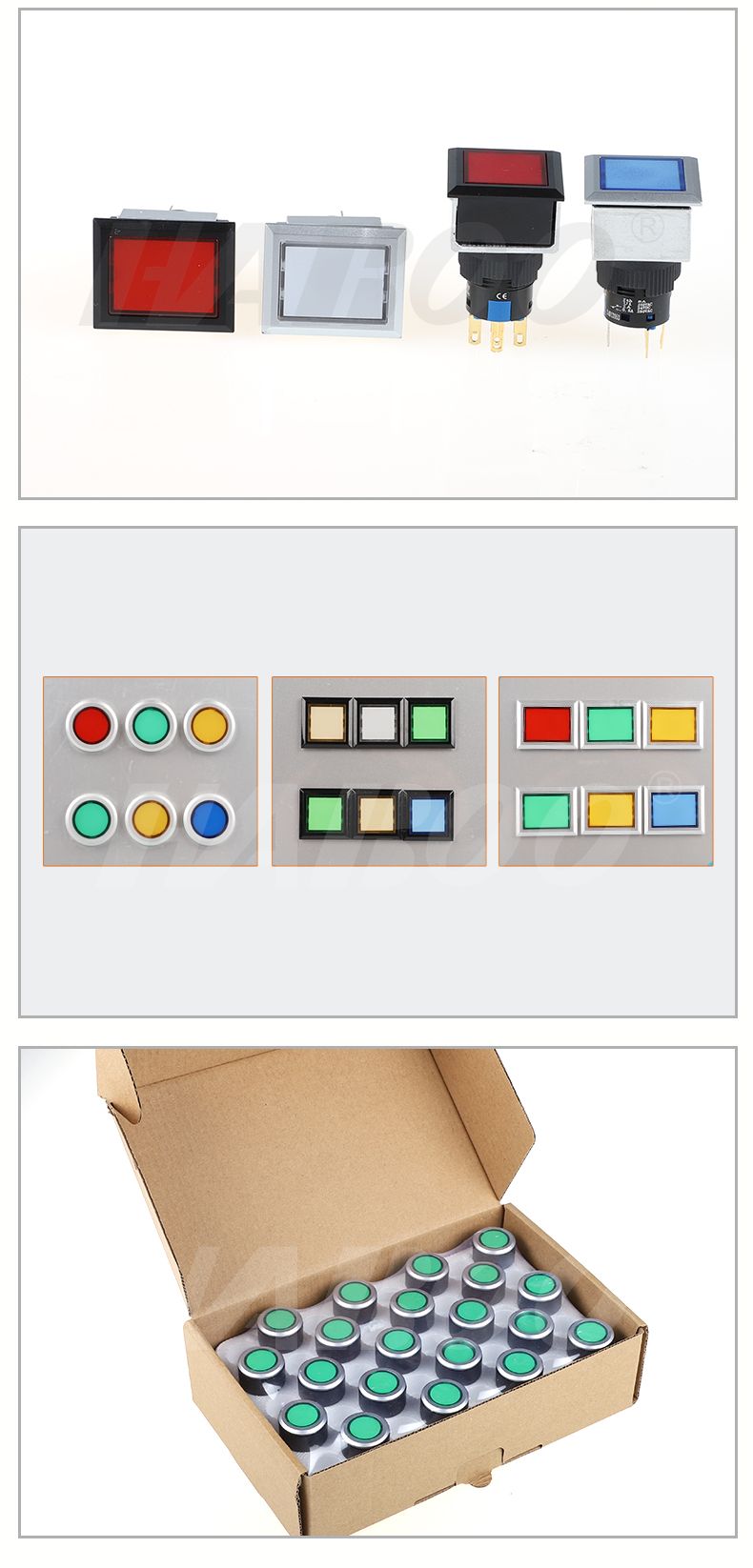 超薄面板镶嵌式带灯复位自锁圆形方形矩形按钮开关 3A 220V