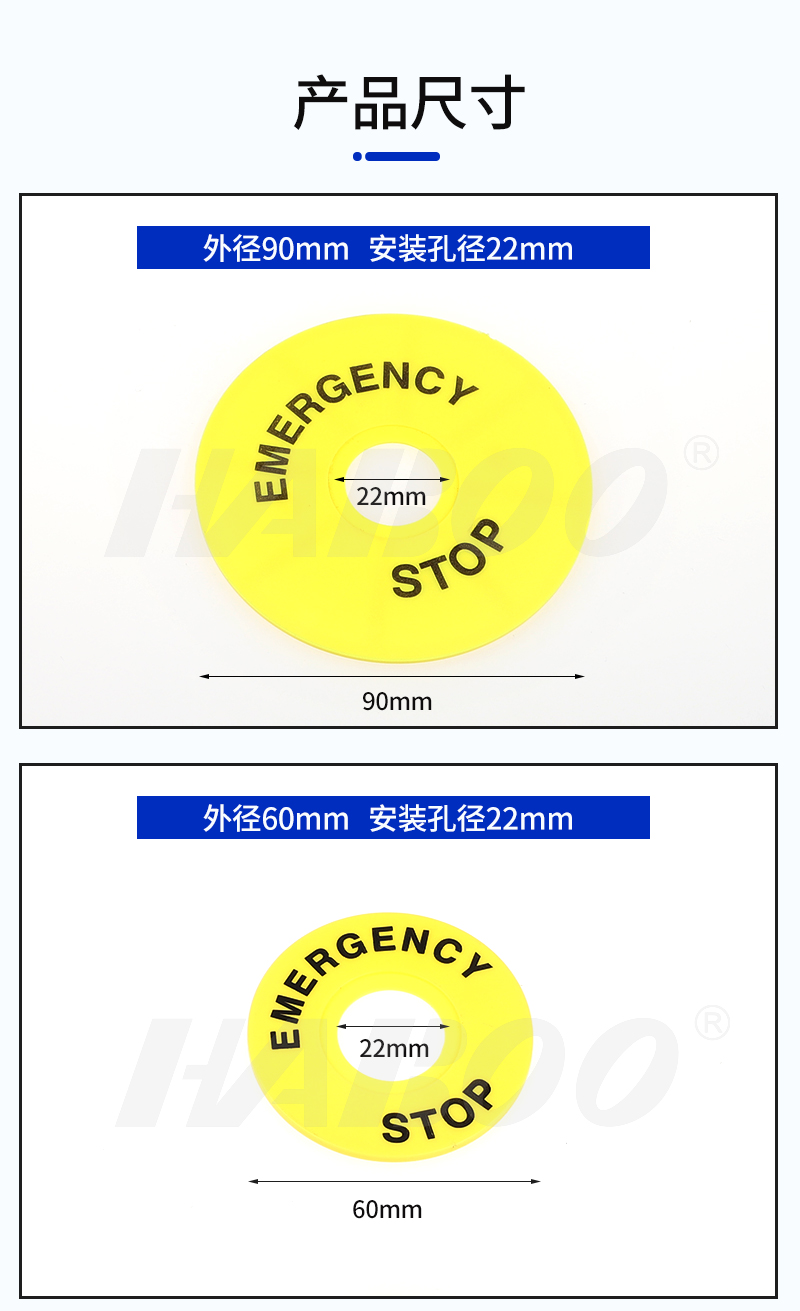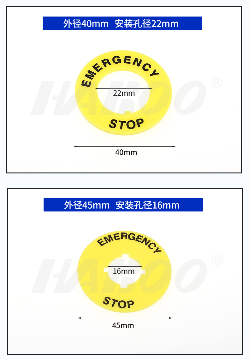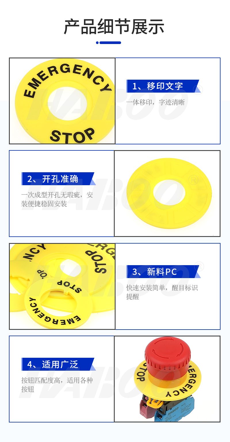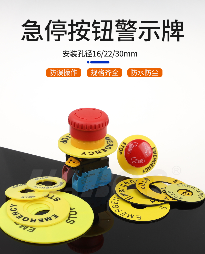 16/22/25/30mm 急停按钮开关警示牌 警示板 铭牌