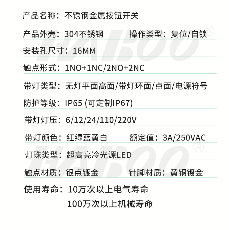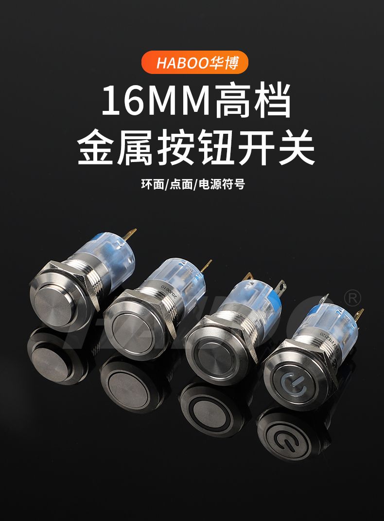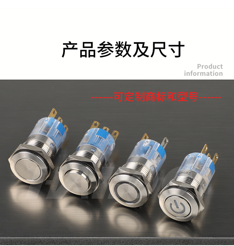 开孔16mm 金属防水IP65不锈钢高品质复位/自锁带灯环面电源符号按钮开关 开关电源
