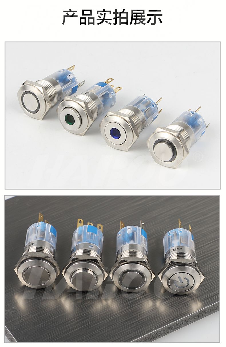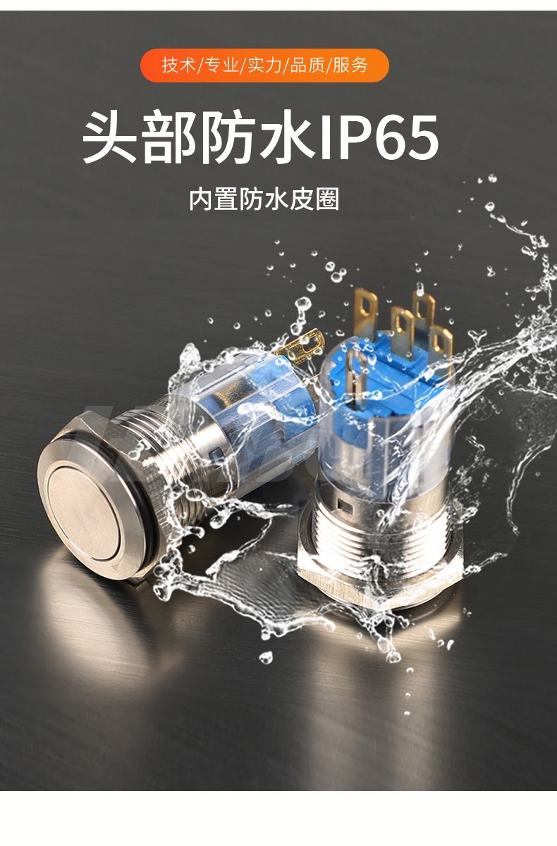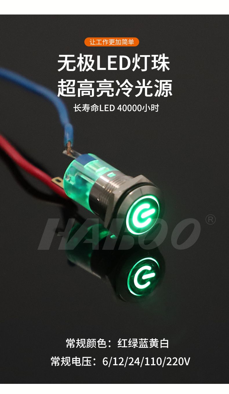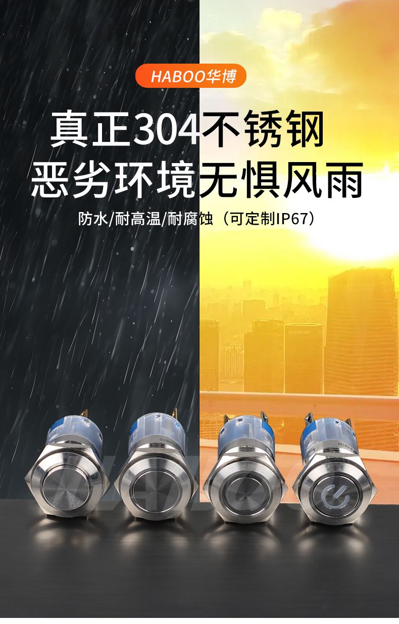 19mm 金属不锈钢复位带灯自锁电源按钮开关 防水IP65 IP67 工厂供应