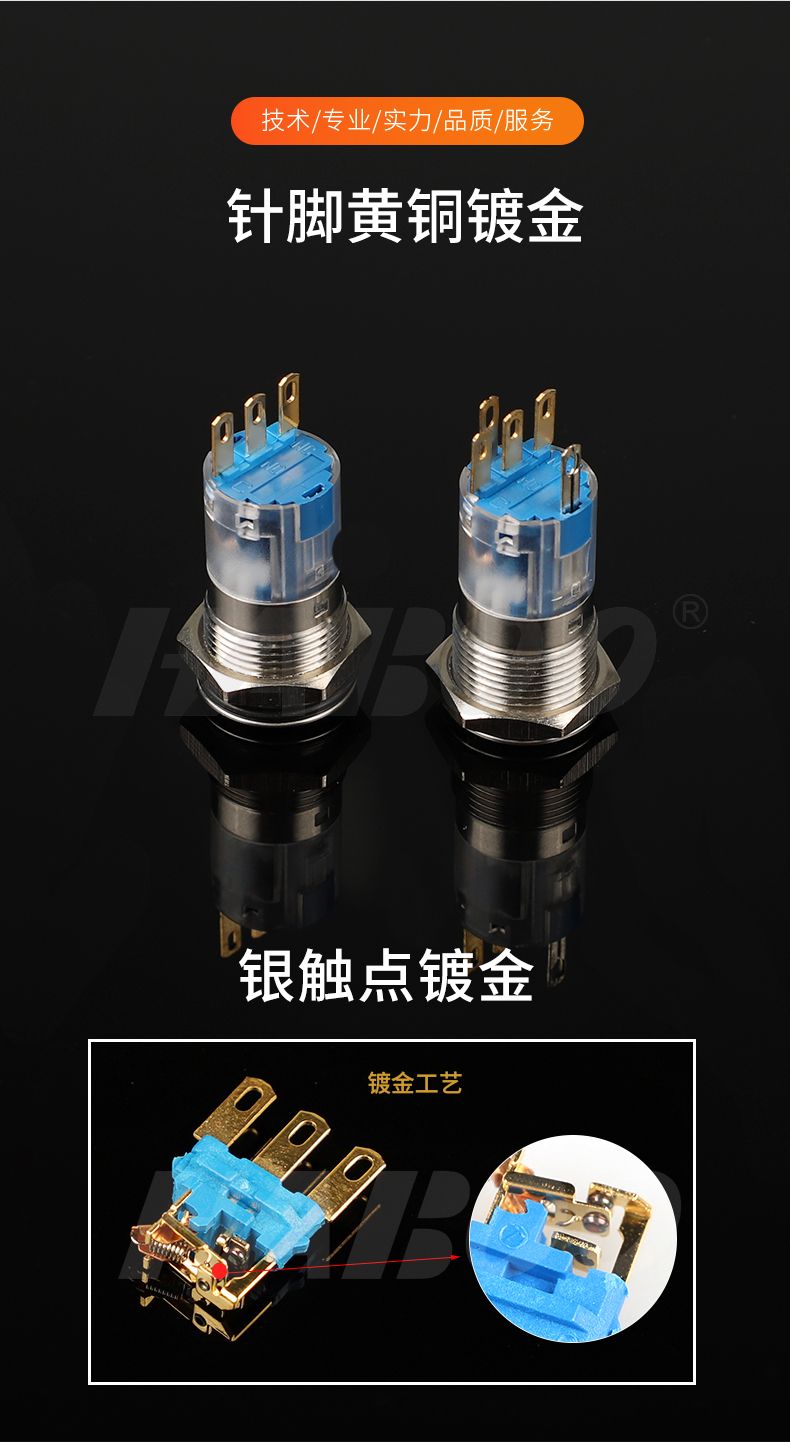 16MM 分体式复位自锁两档三挡选择按钮开关 高品质