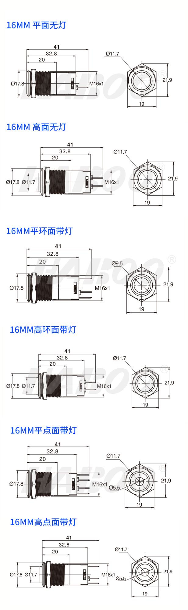 16mm 二档三档复位自锁钥匙按钮开关 圆形方形矩形
